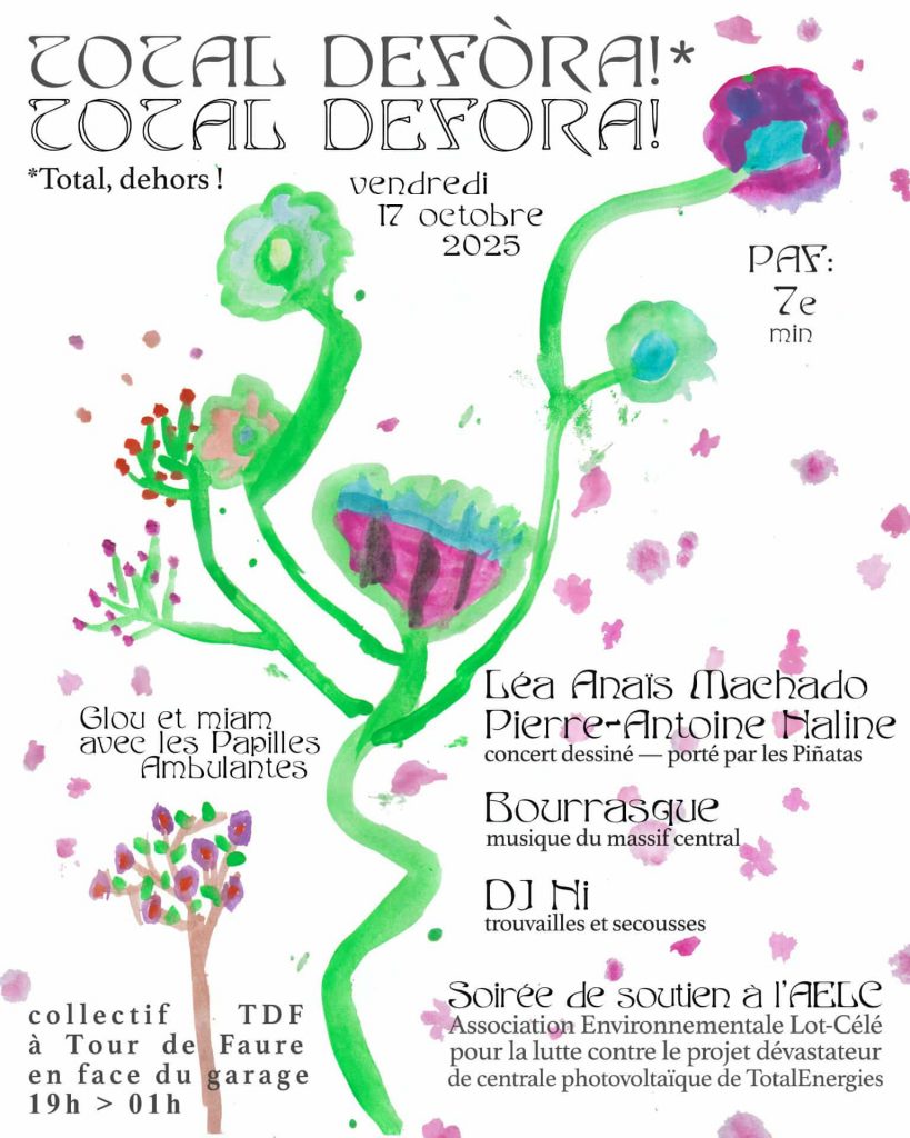 En soutien à l’association, le collectif organise une soirée concerts à partir de 19h. Nous serons au rendez-vous pour continuer à informer sur notre lutte ! Et n’hésitez pas à venir profiter des bonnes ondes !